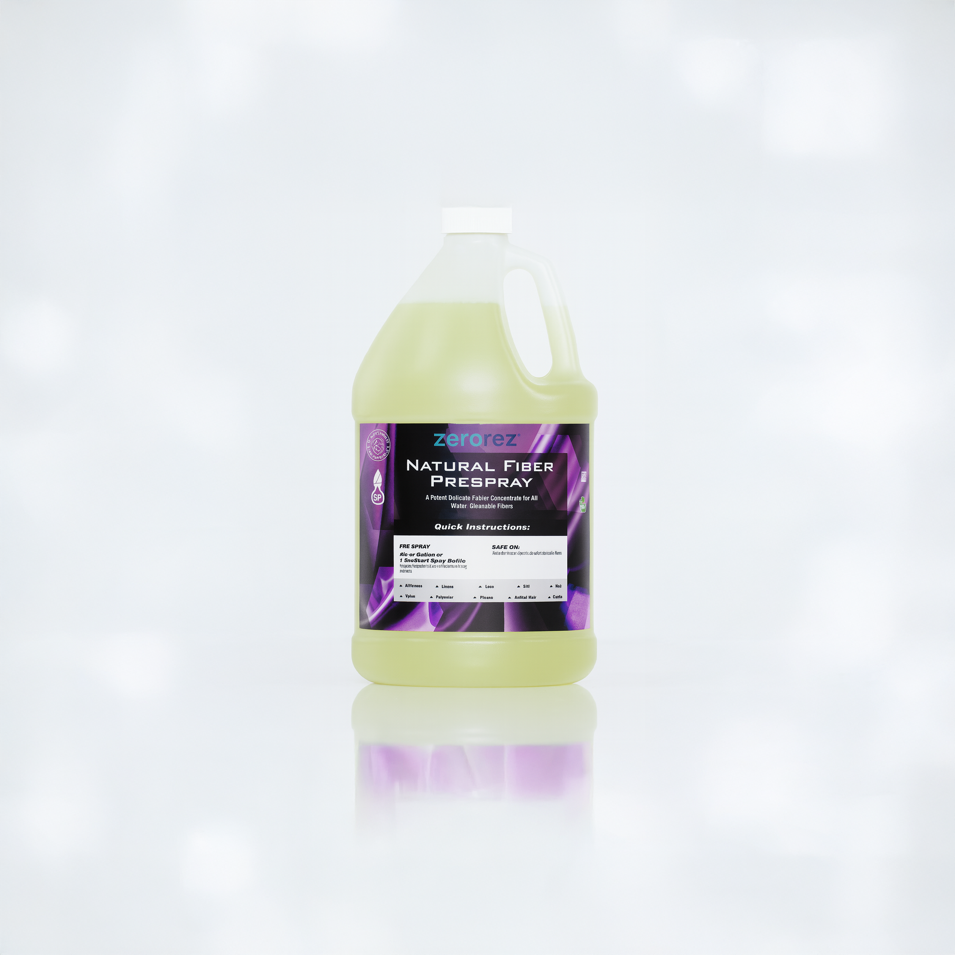 Zerorez Natural Fiber Prespray is specially formulated to be a natural but powerful cleaner for fine fabrics. This product is safe for all fabrics, fine linens, lace, silk, wool, cotton, nylon, polyester, fleece and animal hair. Zerorez Natural Fiber Prespray is the perfect product to use on unidentifiable fibers in all forms, upholstery, animal hair rugs , carpet etc.